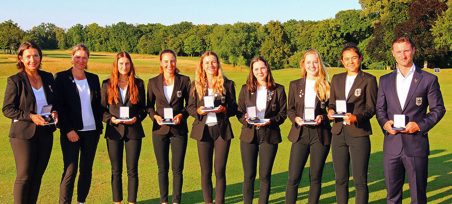 So ging es dann im Spiel um Platz 3 gegen Schweden um die Bronzemedaille und die deutschen Damen, allen voran unser Team SLR, sollten liefern. Während Charlotte Back und Chiara Horder ihr Duell am 2. Extraloch leider verloren geben mussten, war auf Stella Jelinek und Paula Schulz-Hanßen Verlass - eine furiose Aufholjagd nach drei Punkten Rückstand sicherte den so wichtigen Ausgleich vor den Einzeln - diese sollten dann an Dramatik nicht zu überbieten sein. Der Sieg von Paula Schulz-Hanßen und die Punkteteilung von Charlotte Back in packenden Duellen waren am Ende ausschlaggebend dafür, dass die deutschen Damen über Bronze jubeln durften. Herzlichen Glückwunsch!