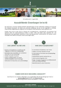 Der Golf Club St. Leon-Rot verbindet sportliche Spitzenleistungen mit einer erstklassigen Ausbildung, die weit über den Golfsport hinausreicht. Wir bieten eine praxisnahe Ausbildung, bei der Du auf Augenhöhe in vielfältige, anspruchsvolle Aufgabenbereiche eingeführt wirst und gezielt in Deine persönlichen Stärken gefördert wirst.
