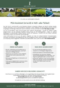 Zur Verstärkung unseres engagierten, motivierten und professionellen Teams suchen wir eine/n PGA Assistant (m/w/d).
