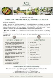 Wir suchen Dich, um unser Team für die Saison 2026 zu vervollständigen. Idealerweise von April bis Oktober 2026.